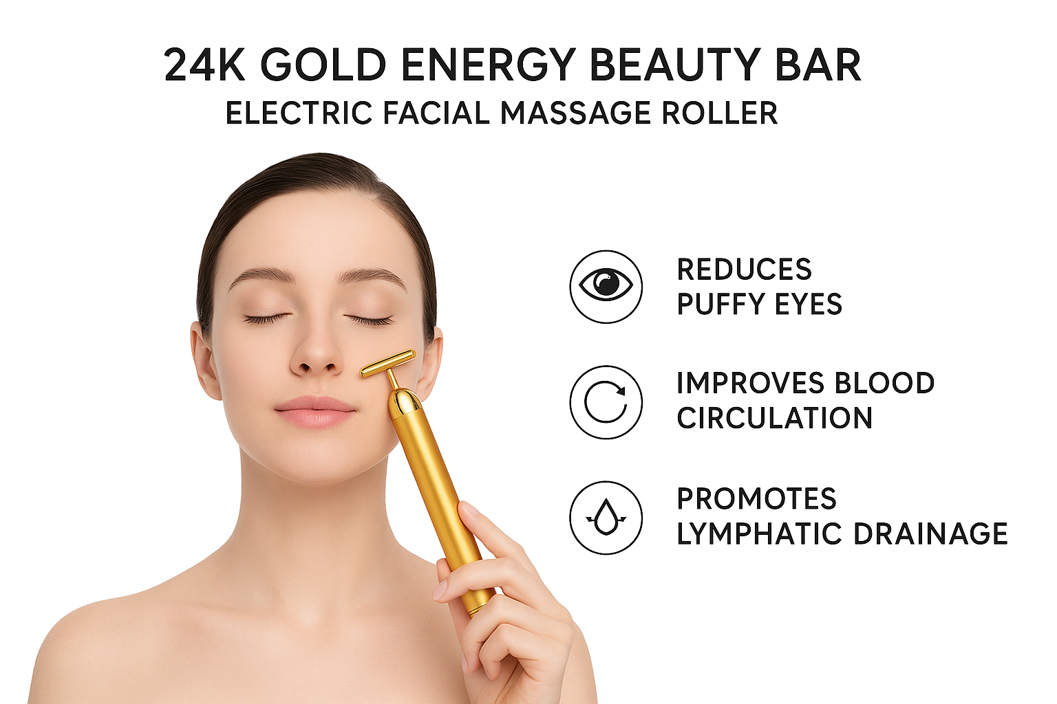 24K Gold Energy Beauty Bar Electric Facial Massage Roller