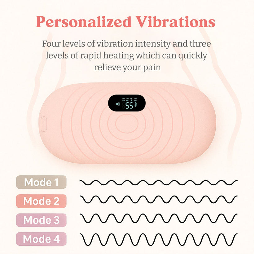 Our Period Cramp Relieving Heating Pad and Massager uses USB charging, ensuring convenience and flexibility. With three adjustable temperature settings and four massage modes, you can customise your experience based on your unique needs. It seamlessly fits into your lifestyle, allowing you to manage your period discomfort without disrupting your daily activities.